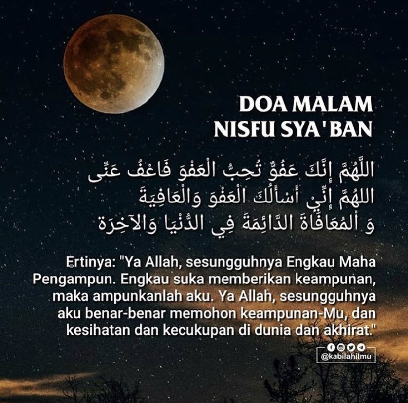 D oa nisfu sya'ban setelah salat maghrib pada malam purnama bulan sya'ban.